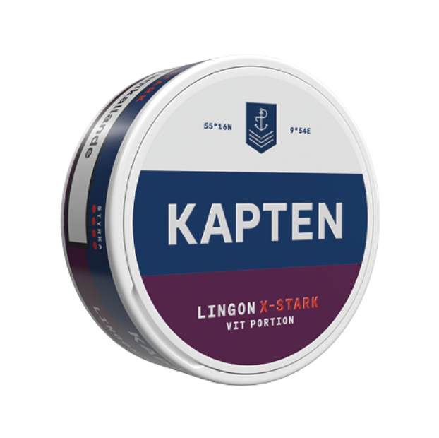 Kapten Lingon X-stark är ett extra starkt white-snus med smak av lingon och tobak i en fylligare och större prilla.