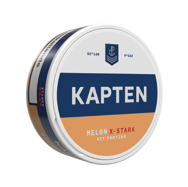 Kapten Melon X-stark är ett extra starkt white-snus med smak av melon och tobak i en fylligare och större prilla.