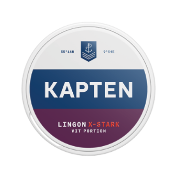 Kapten Lingon X-stark är ett extra starkt white-snus med smak av lingon i en fylligare större prilla.