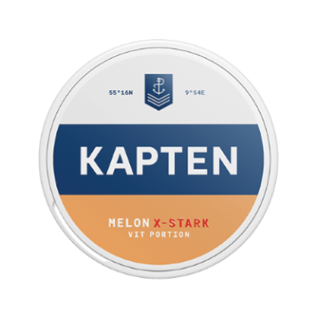 Kapten Melon X-stark är ett extra starkt white-snus med smak av melon i en fylligare större prilla.