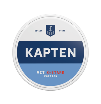 Kapten Vit X-stark är ett extra starkt white-snus med den klassiska bergamottsmaken i en fylligare och större prilla.